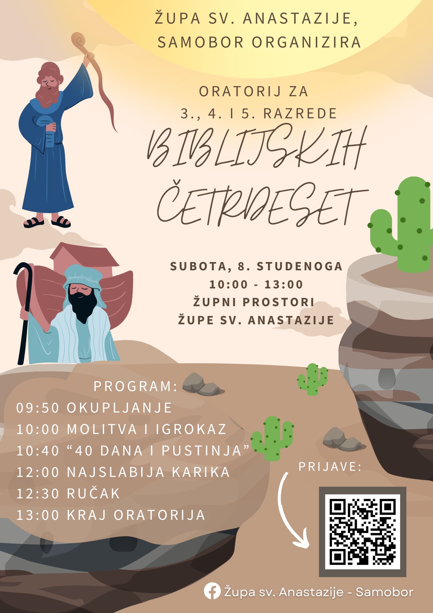 [ORATORIJ "BIBLIJSKIH ČETRDESET"] Pozivamo svu djecu 3., 4., i 5. razreda osnovne škole na oratorij "Biblijskih četrdeset" koji će se održati u subotu, 8. studenoga u pro