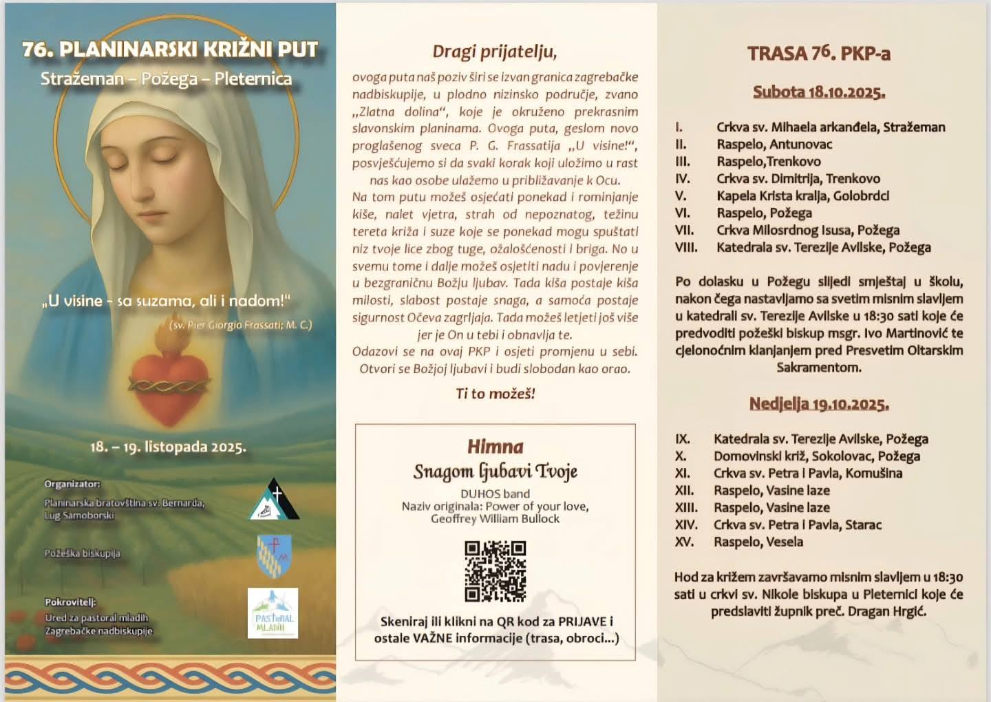 [75. PLANINARSKI KRIŽNI PUT] Bratovština Svetog Bernarda organizira 75. planinarski križni put 18. i 19. listopada koji će ići trasom Stražeman - Požega – Pleternica. Prijave traju