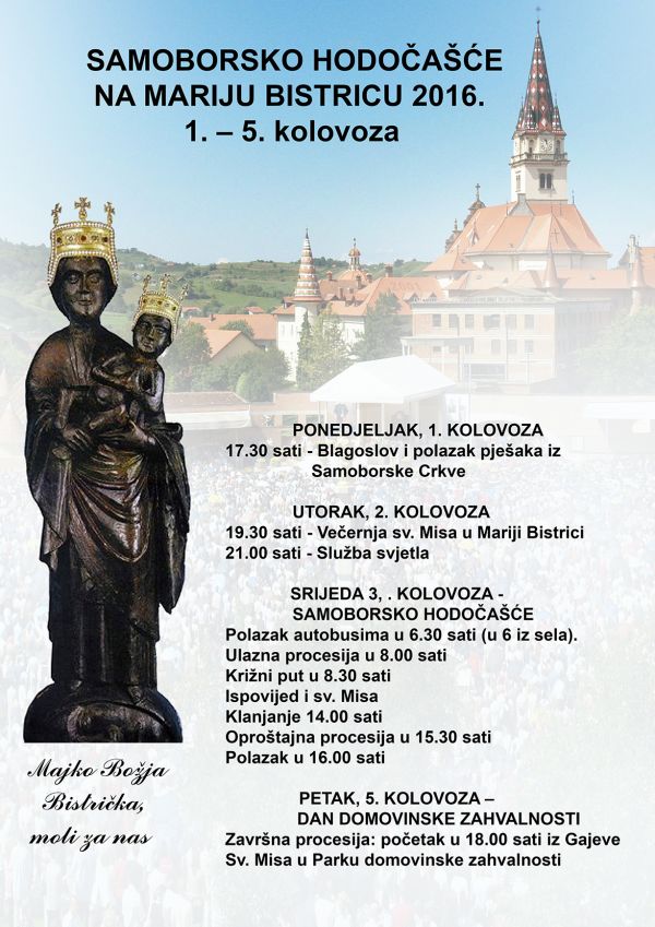 Samoborsko hodočašće na Mariju Bistricu 1. - 5. kolovoza 2016.
