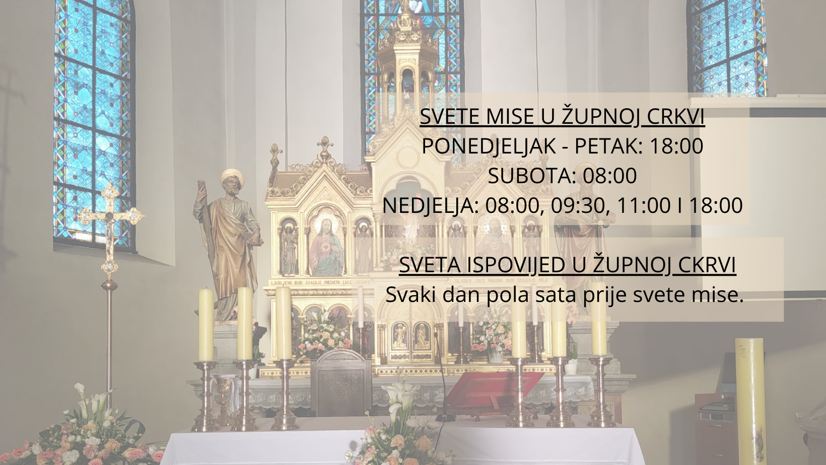 TRIDESET I TREĆA NEDJELJA KROZ GODINU 13. studenoga 2022. 1. SVETE MISE U ŽUPNOJ CRKVI NEDJELJOM: 8, 9.30, 11 i 18 SATI RADNIM DANOM: 18 SATI SUBOTOM: 8 SATI
