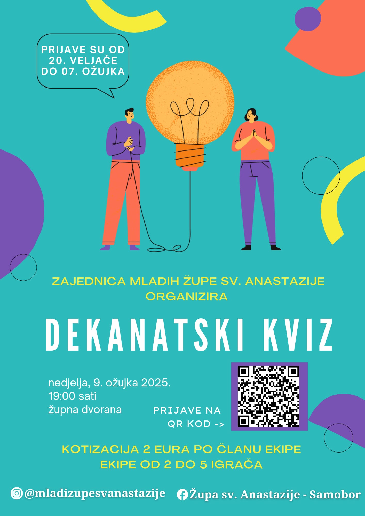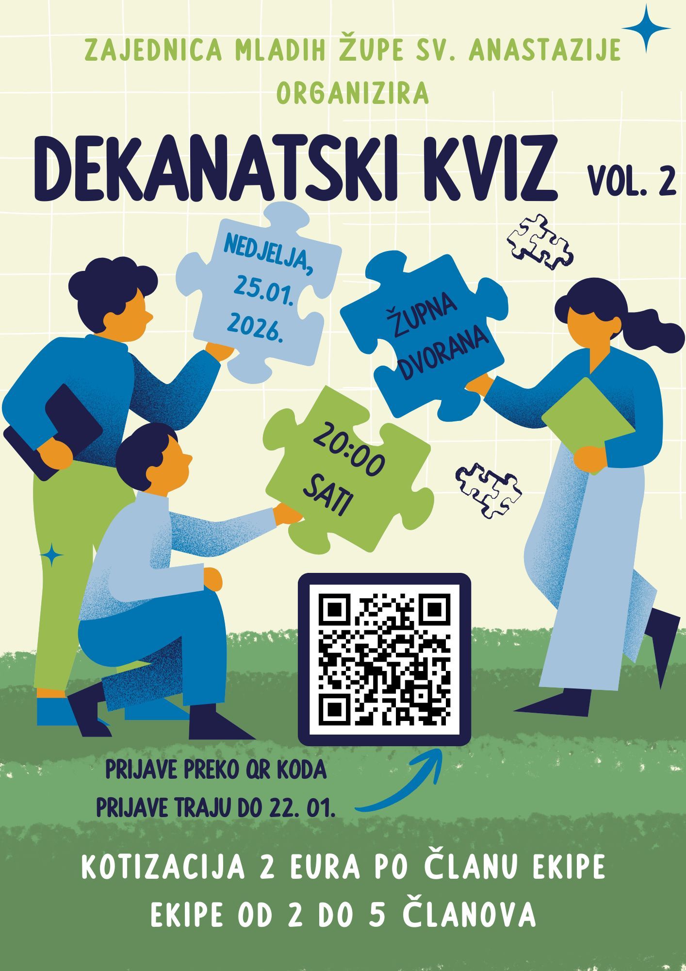 [DEKANATSKI KVIZ] Zajednica mladih župe sv. Anastazije organizira Dekanatski kviz općeg znanja, koji će se održati u nedjelju, 25. siječnja. Prijaviti se mogu svi mladi iz Samoborsko-okić