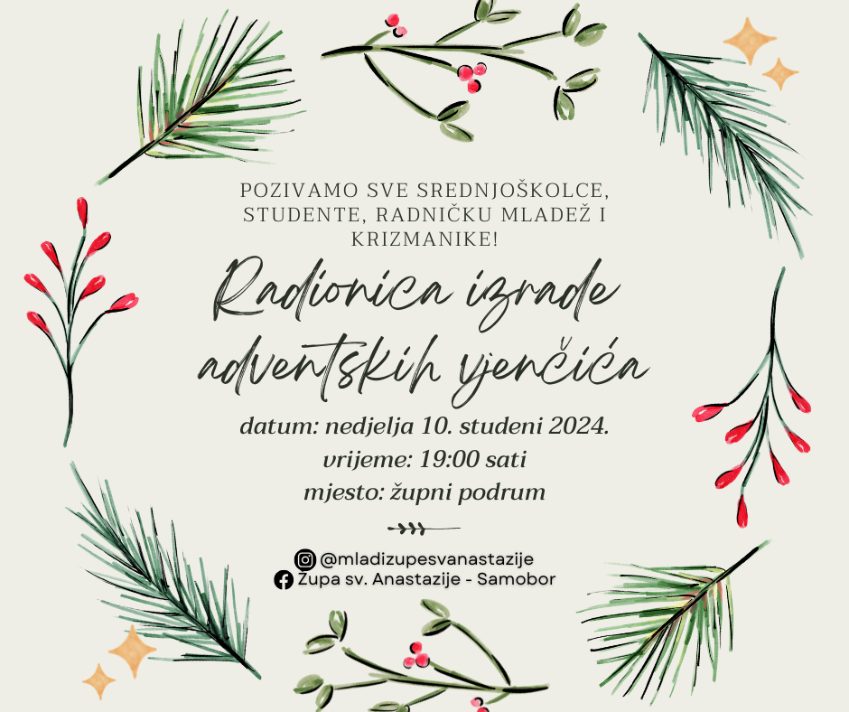 [SUSRETI ZA MLADE - RADIONICE IZRADE ADVENTSKIH VJENČIĆA] Nastavljamo s redovitim susretima zajednice mladih, nedjeljom nakon večernje svete mise u župnom podrumu. Ove nedjelje, 10. studen