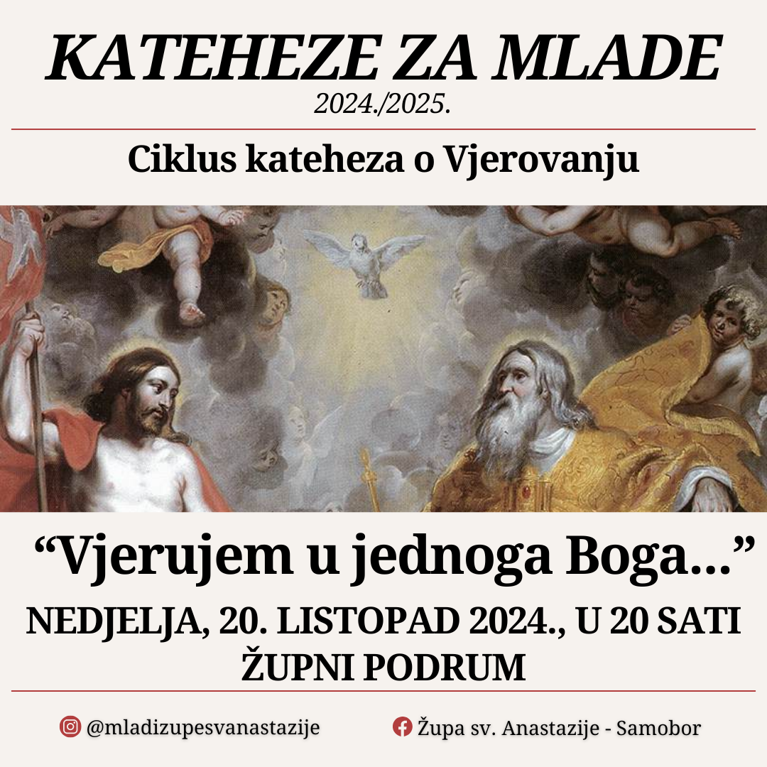 [KATEHEZE ZA MLADE - CIKLUS KATEHEZA O VJEROVANJU] U nedjelju 27. listopada nastavljamo s redovitim susretima zajednice mladih, čiji je redoviti termin nedjeljom nakon večernje svete mise u žu
