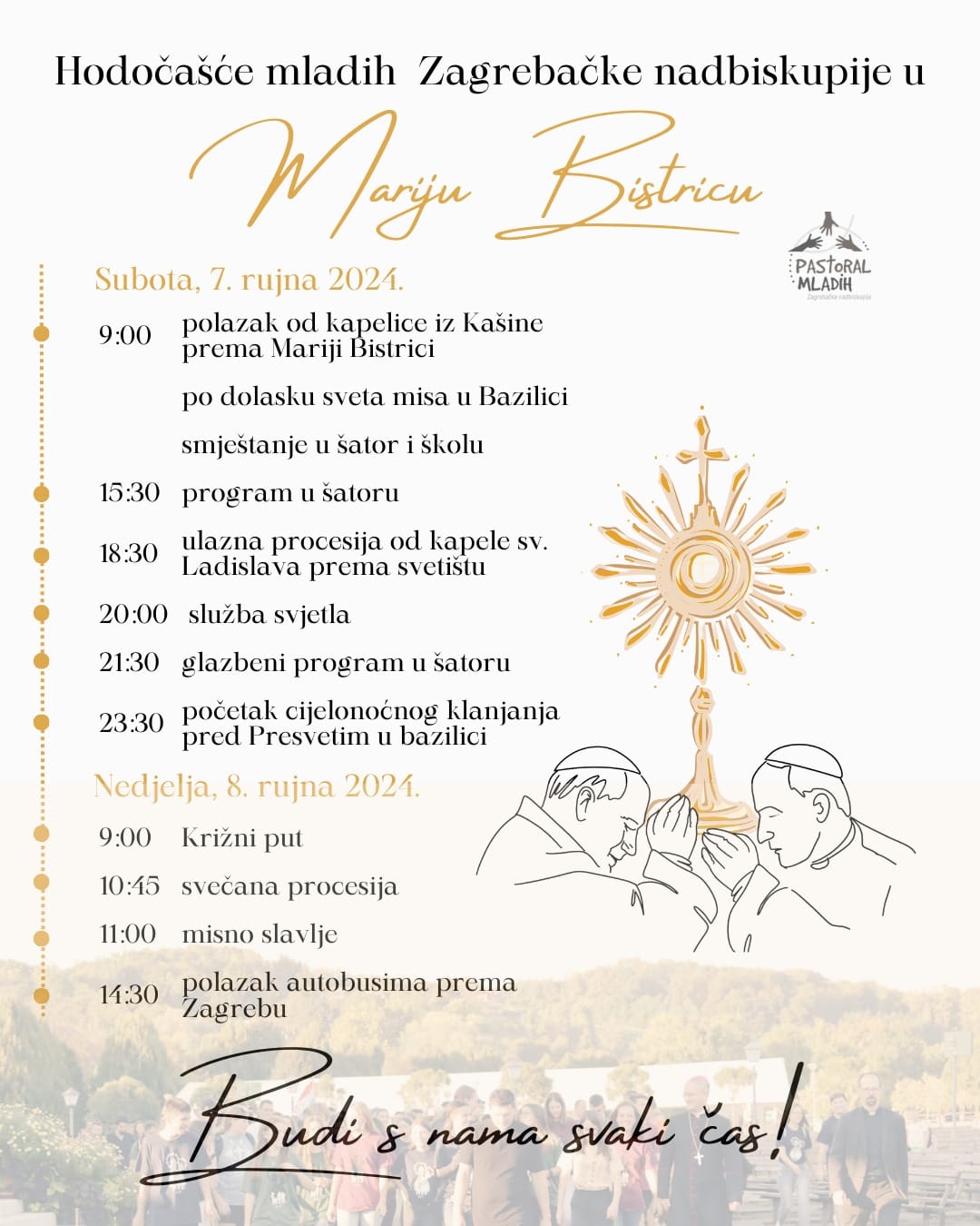Hodočašće mladih Zagrebačke nadbiskupije u Hrvatsko nacionalno svetište Majke Božje Bistričke, kao i 301. Zavjetno hodočašće vjernika grada Zagreba, održat će se ove godine u subo