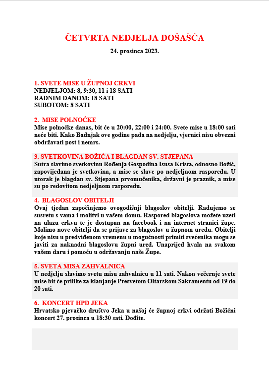 ČETVRTA NEDJELJA DOŠAŠĆA, 24. prosinca 2023.