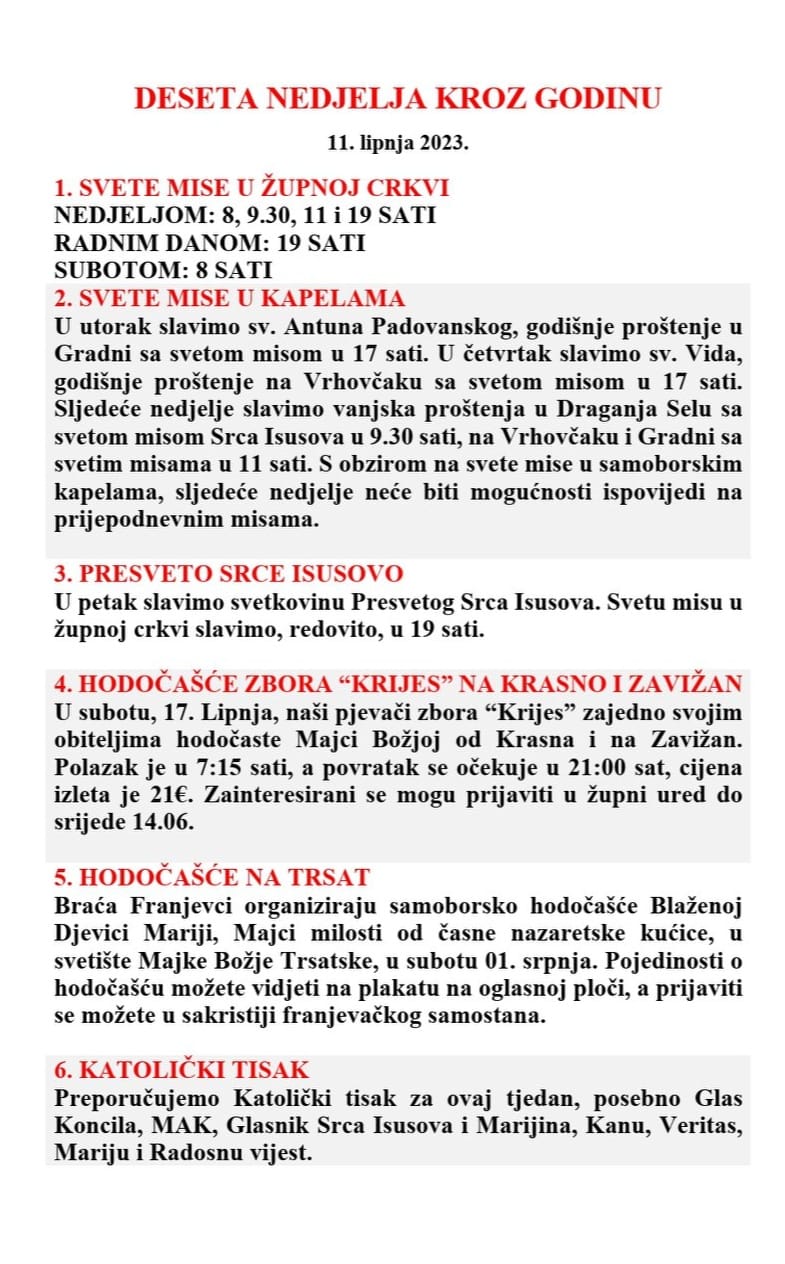 DESETA NEDJELJA KROZ GODINU, 11. lipnja 2023.
