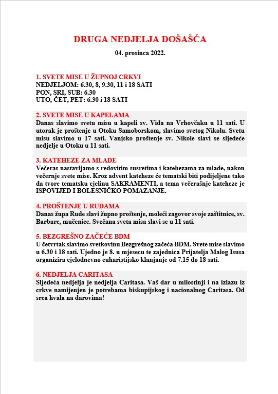 DRUGA ADVENTSKA NEDJELJA 04. prosinca 2022.