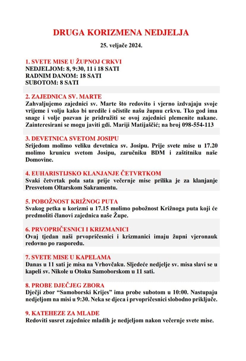 DRUGA KORIZMENA NEDJELJA, 25. veljače 2024.