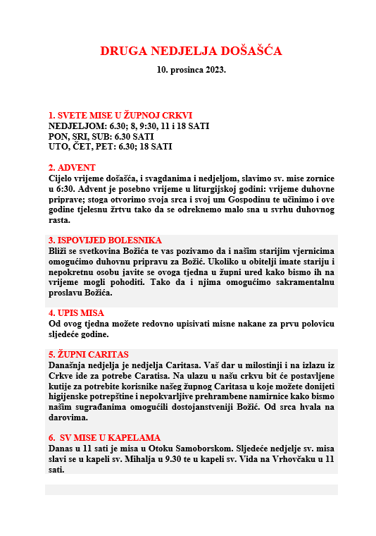 DRUGA NEDJELJA DOŠAŠĆA, 10. prosinca 2023.