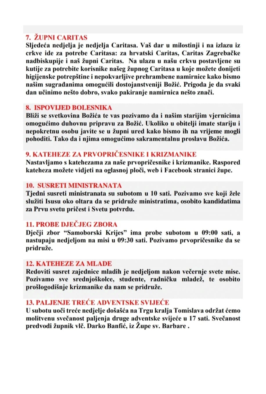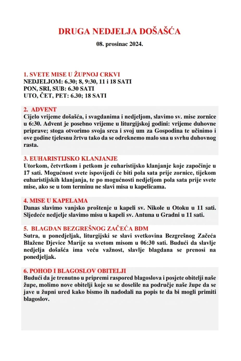 DRUGA NEDJELJA DOŠAŠČA, 8. prosinac 2024.