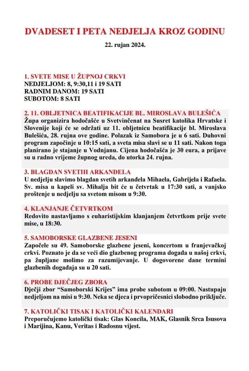 DVADESET I PETA NEDJELJA KROZ GODINU, 22. rujna 2024
