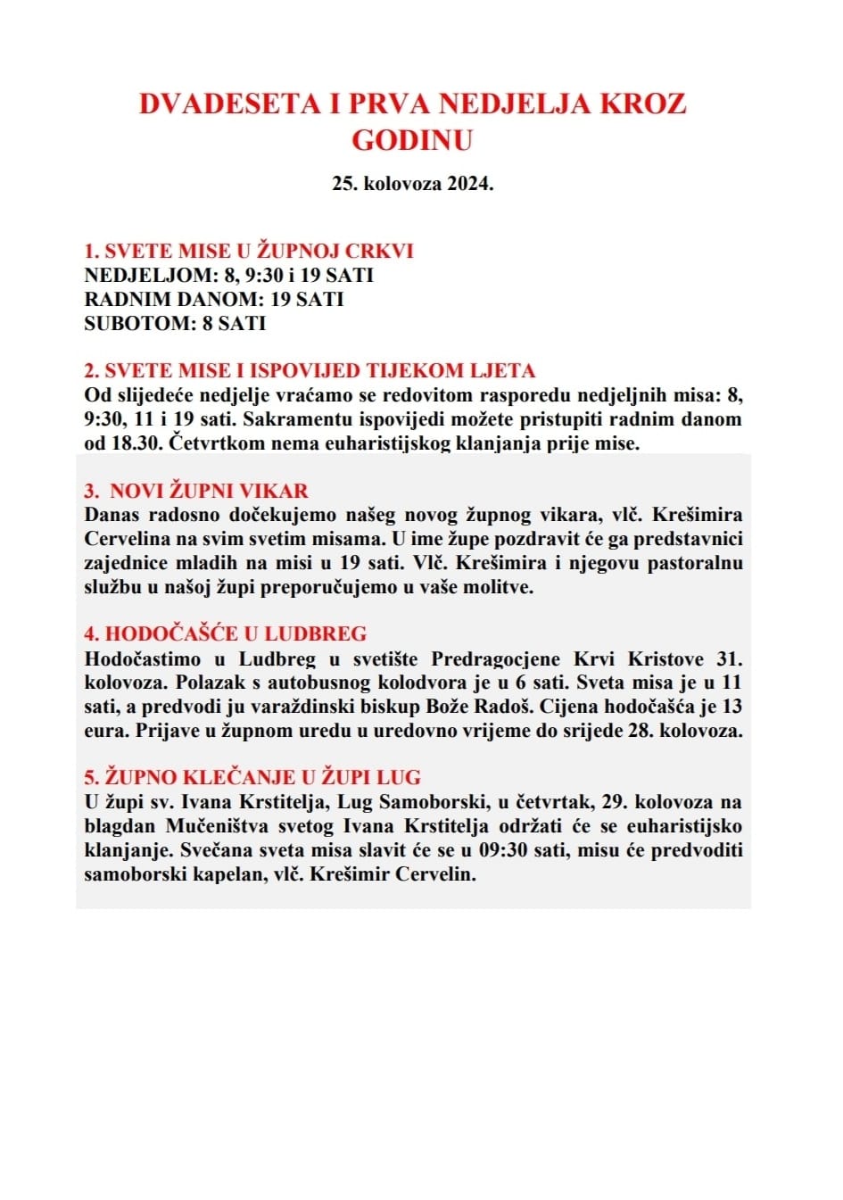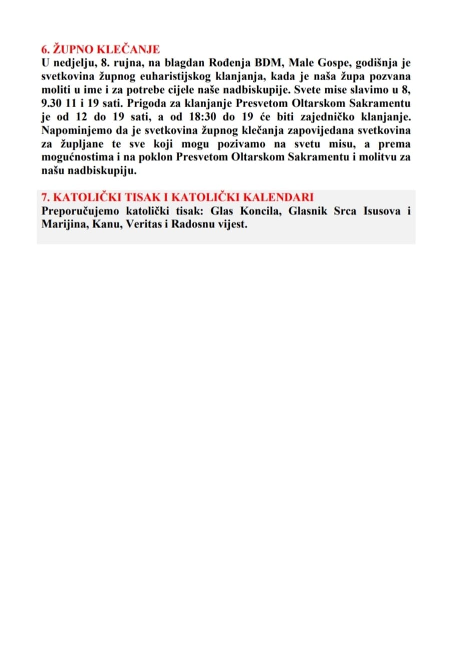 DVADESET I PRVA NEDJELJA KROZ GODINU, 25. kolovoza 2024.