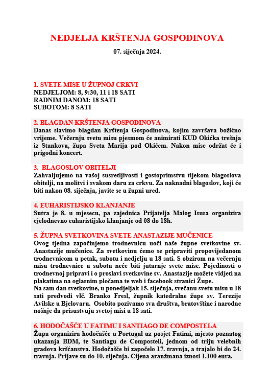 KRŠTENJE GOSPODINOVO 07. siječnja 2024.