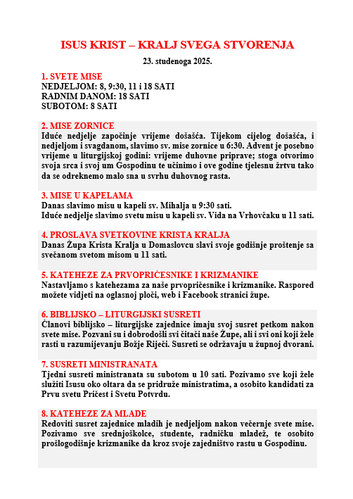 NEDJELJA KRISTA KRALJA, 23. studenoga 2025.