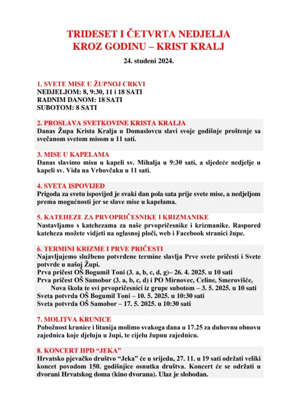 NEDJELJA KRISTA KRALJA, 24. studenoga 2024.