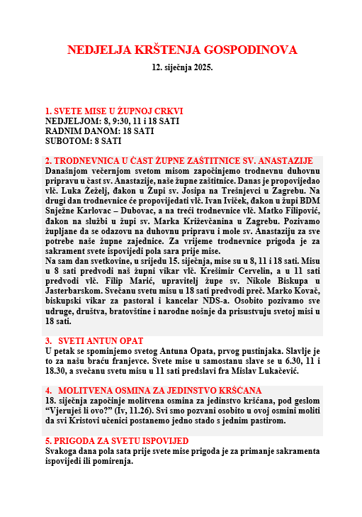 NEDJELJA KRŠTENJA GOSPODINOVA, 12. siječnja 2025.