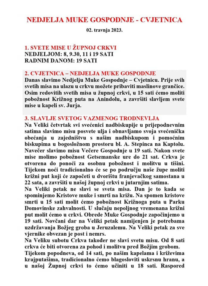 NEDJELJA MUKE GOSPODNJE, 04. travnja 2023.