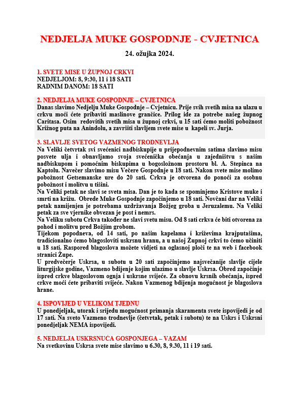 NEDJELJA MUKE GOSPODNJE, 24. ožujka 2024.