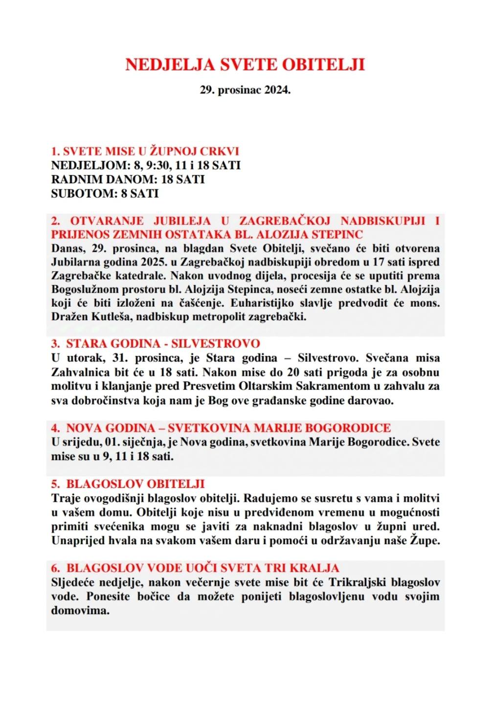 NEDJELJA SVETE OBITELJI, 29. prosinca 2024.