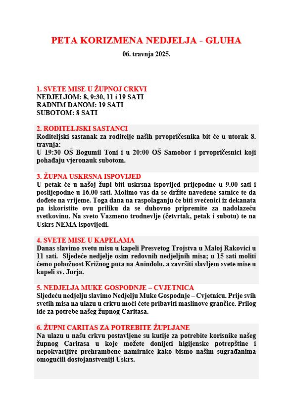 PETA KORIZMENA NEDJELJA, 06. travnja 2025