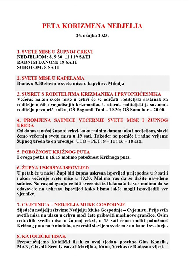 PETA KORIZMENA NEDJELJA, 26. ožujka 2023.