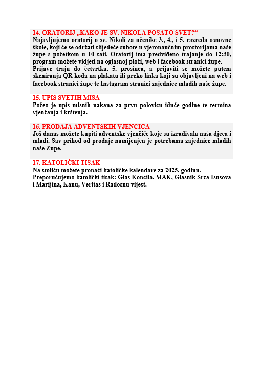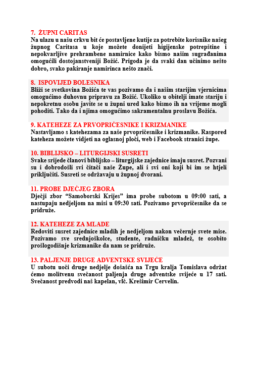 PRVA NEDJELJA DOŠAŠĆA, 01. prosinca 2024