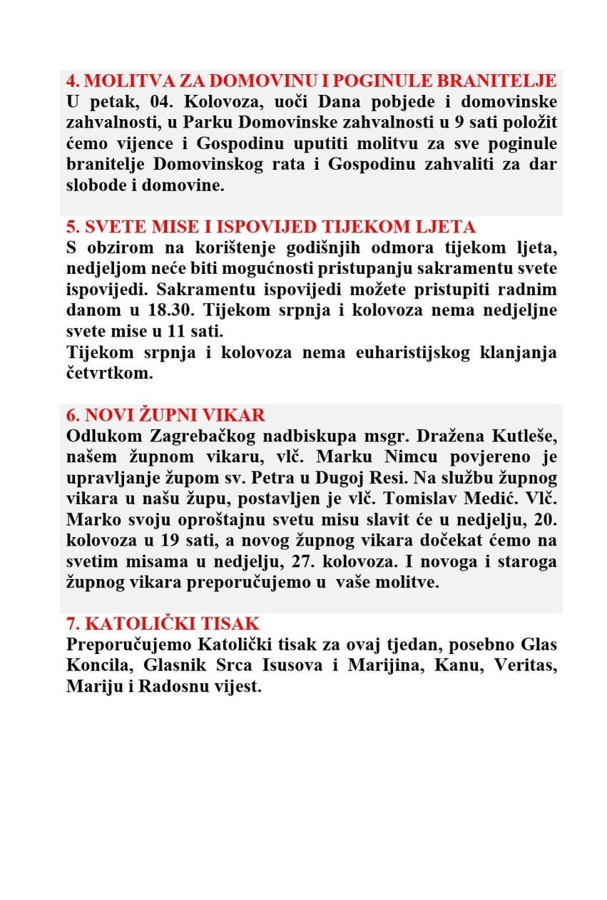 SEDAMNAESTA NEDJELJA KROZ GODINU, 30. srpnja 2023.