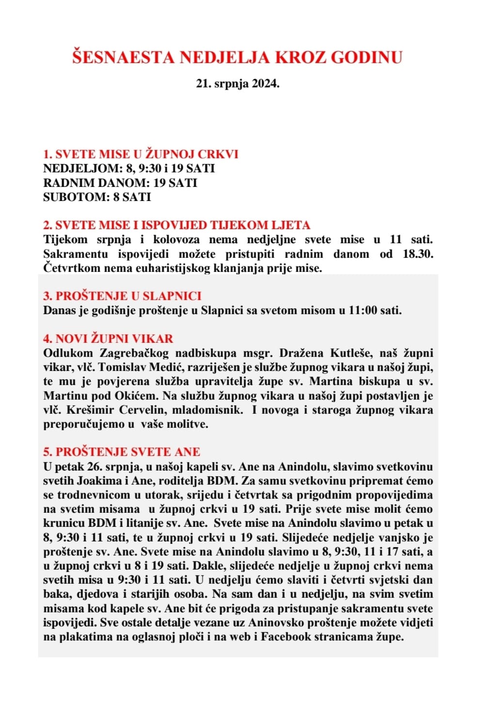 ŠENAESTA NEDJELJA KROZ GODINU 21.srpnja 2024.