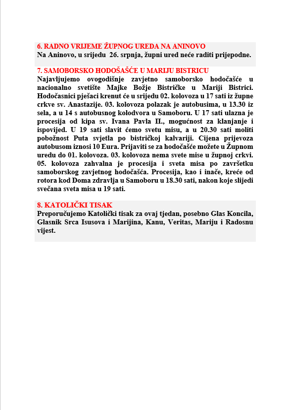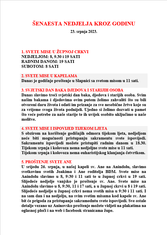 ŠENAESTA NEDJELJA KROZ GODINU 23.srpnja 2023.