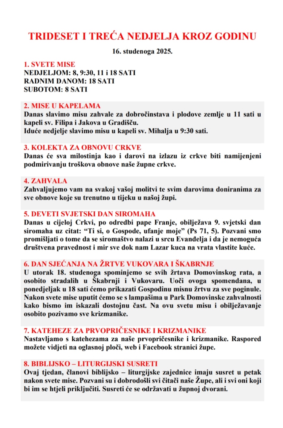 TRIDESET I TREĆA NEDJELJA KROZ GODINU, 16. studenog 2025.