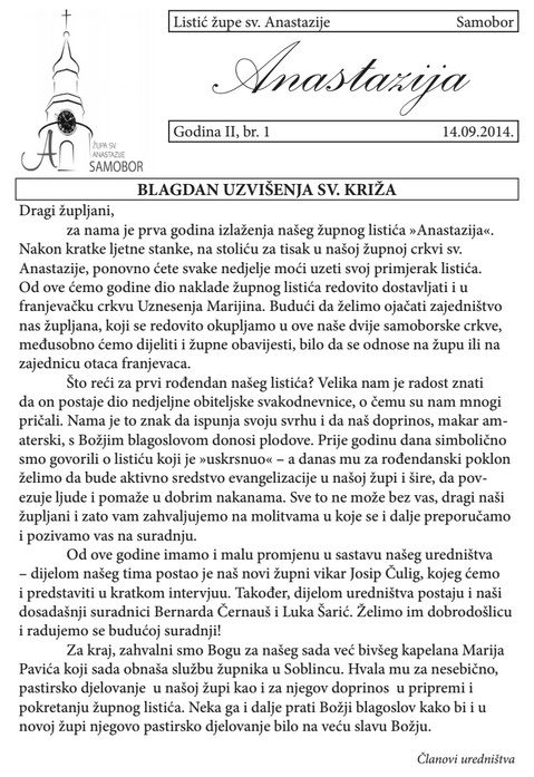 Župni listić Anastazija br.1 godina 2.