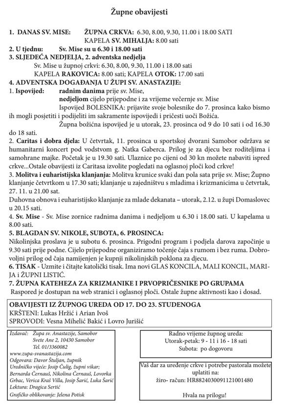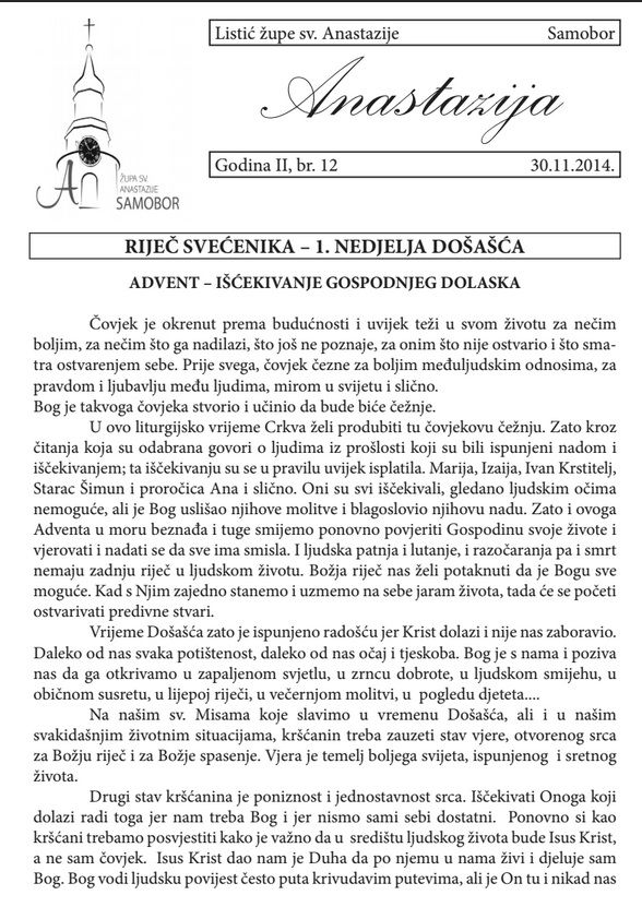 Župni listić Anastazija br.12 godina 2.
