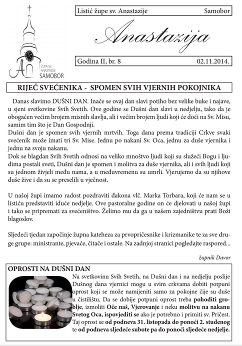 Župni listić Anastazija br.8 godina 2.