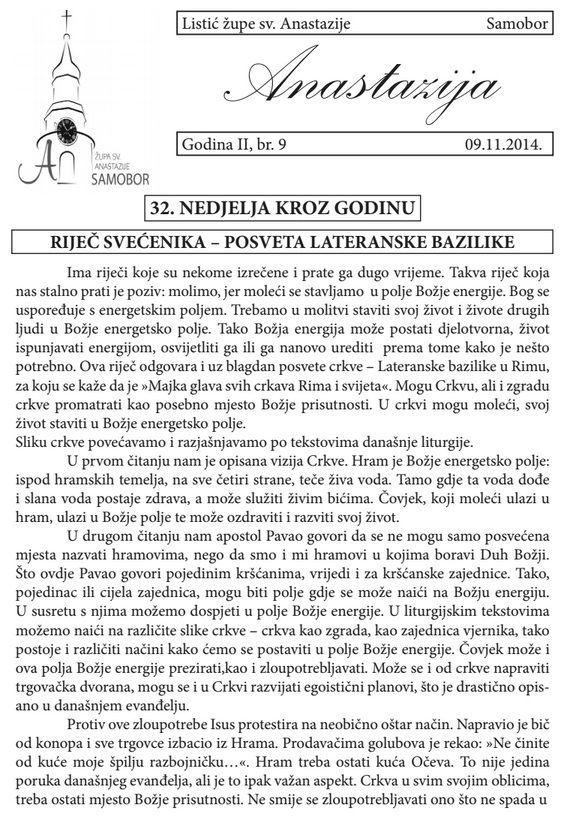 Župni listić Anastazija br.9 godina 2.